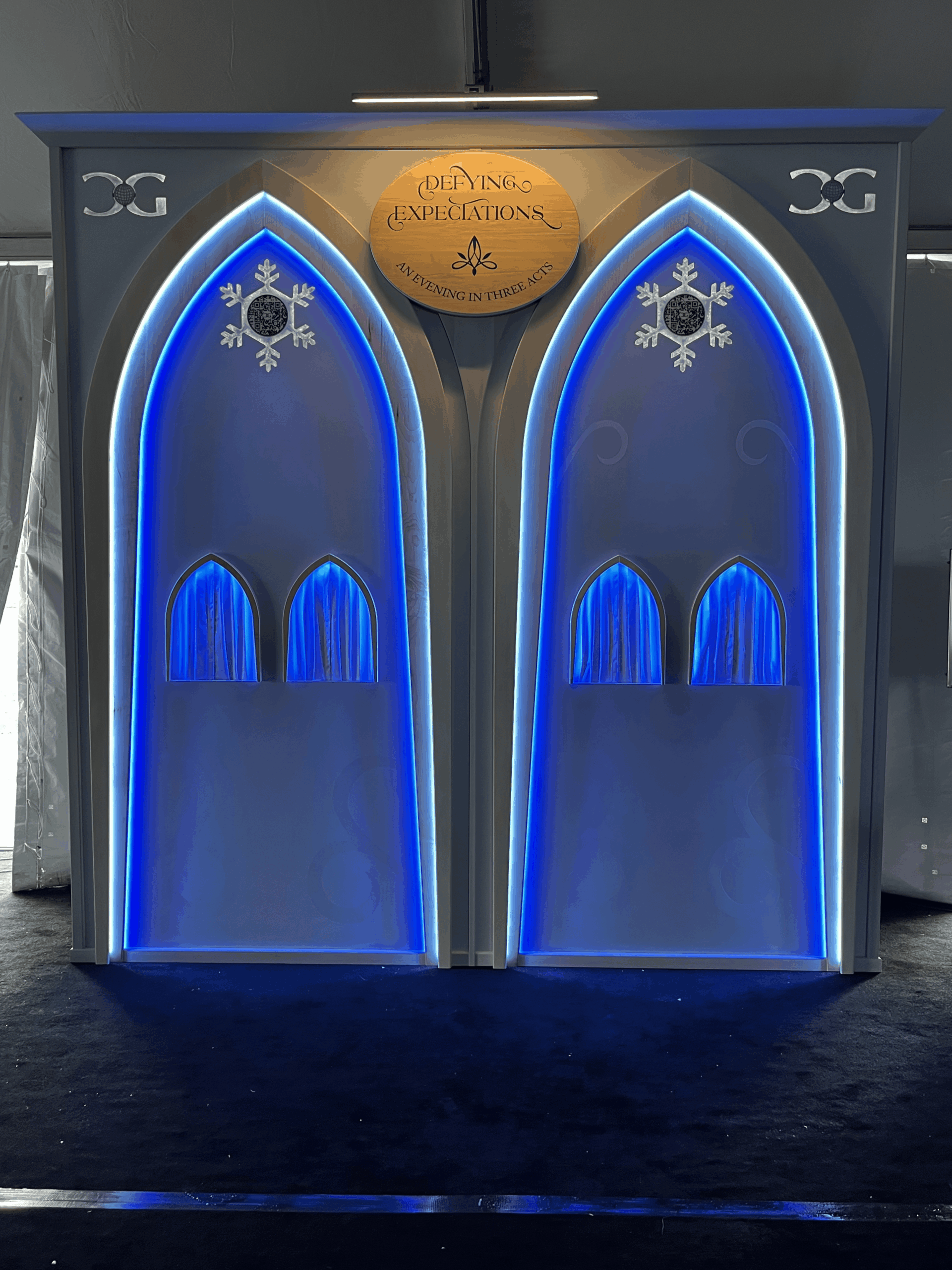 The wall itself was decorated to complement the evening’s Frozen-inspired theme, creating a shimmering display that felt both elegant and playful—perfectly suited for an evening celebrating the arts.